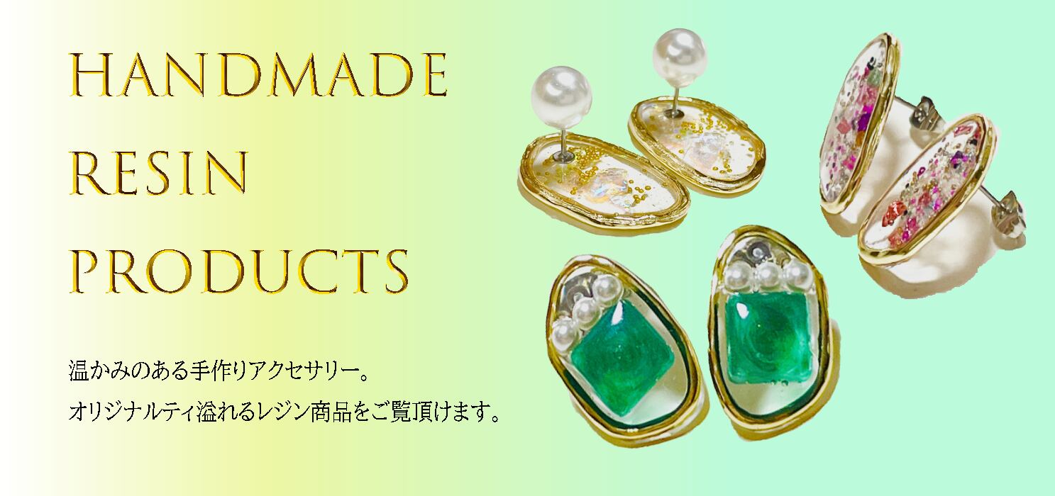 ここでは素材にレジンを利用した、オリジナルアクセサリーを販売しています。